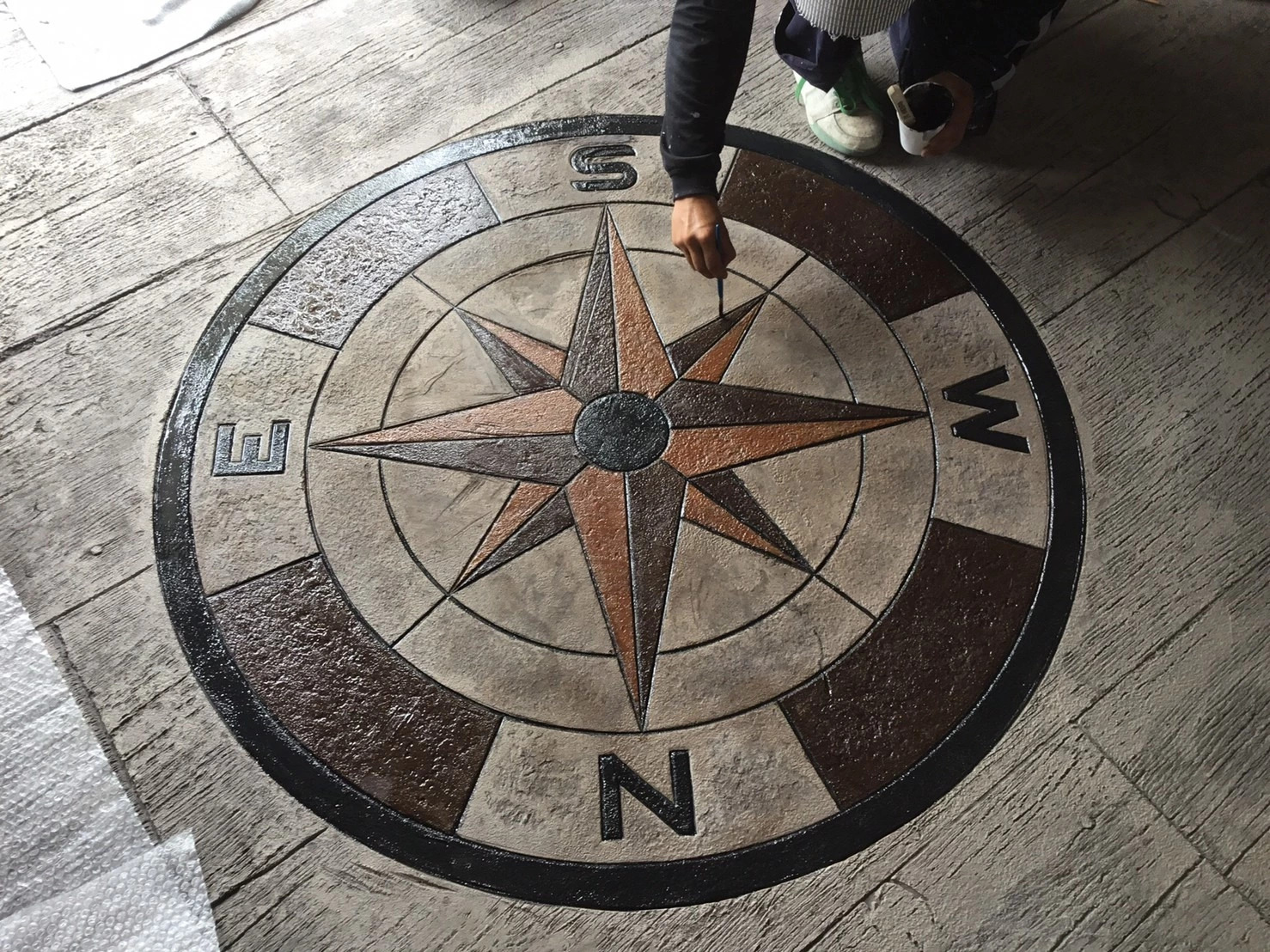 内装スタンプコンクリート(木目コンパス/カフェ)
